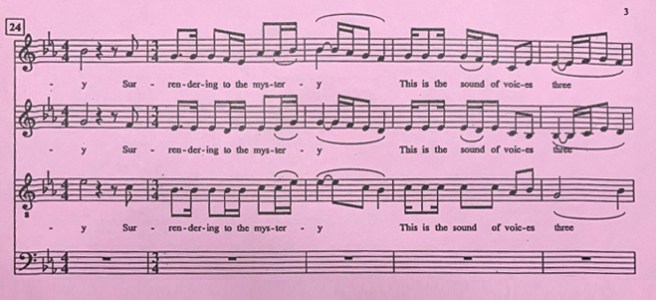 We began with stretches, much like yoga stretches so I was all in. Then Vanessa showed us some vocal exercises, which we would then mimic. About fifteen minutes in we started learning some songs. Each section taught in small parts, a few words at a time. All by ear–the same way we had learned songs all our lives from the radio, or albums or CDs or perhaps, in later years, mp3 players or our favourite streaming service. Memory and repetition were our tools.