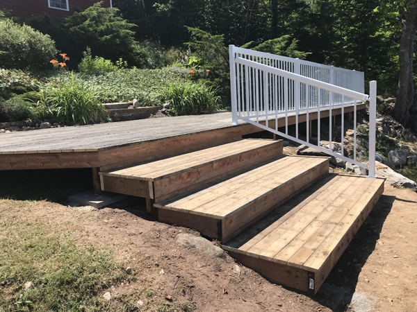 Lucky for us, our carpenter found help. Good help. They worked well together, just the two of them and although I was not impressed with the earlier help, the excuses and the lack of respect for my garden, I was very impressed with their construction work. They completed the deck before end of day Wednesday. It is big. It is solid. It is to code. It is safe. They also moved rocks and created a path to make it easier to lift the kayaks from the deck to the beach area. In the end everything worked out, except for the Junipers. Based on previous experience, we know that things could have gone a lot worse. Now it’s just another adventure behind us, just in time for a visit from the grandkids. They are going to love the deck. Future projects: a side garden and a picnic table for this deck. Credit these to my domino thought process.