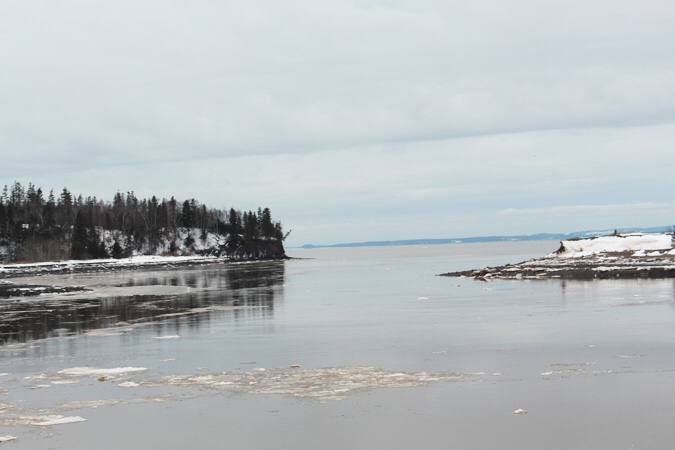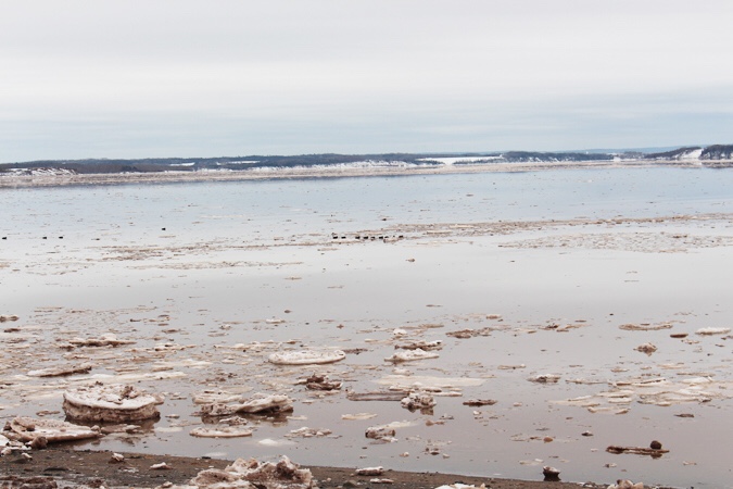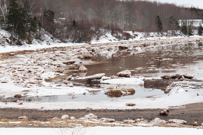 The last time we drove this loop it was summer and everything was beautiful and breathtaking as everything often is in Nova Scotia in the summer. Today, not so much. Dirty snow, bare trees and muddy waters are not beautiful but they are a change of scenery and you know what they say, a change is as good as a vacation.