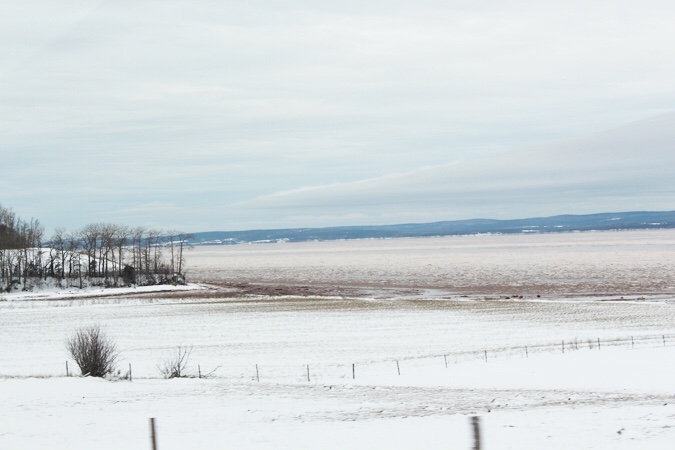 Our plan was to drive up the Noel Shore. We exited Highway 102 and followed the Shubenacadie river towards the Minas Basin. The river is wide and tidal and very muddy in places but impressive none the less. Our intention was to stop at Burntcoat Head to check the tides in the basin. Nova Scotia has the highest tides in the world, and they were recorded at Burntcoat Head. It is a beautiful spot where you can wander the ocean floor when the tides are out. We had never viewed it in the winter and apparently we weren’t going to today either because the park was closed. We should have known, but I believe we deserve some points for deciding to go.