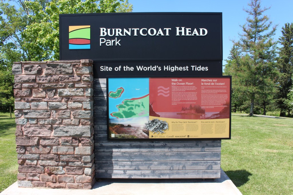 Next we head to Burntcoat Head Park in Noel. Burntcoat Head is the actual site of the highest tides in the world. According to the sign, the tidal range can reach 16.3 metres (53.5 feet) at its greatest, from low tide to high tide. This is where we do more than look at the shoreline. It is were we walk out on the ocean floor. There is a window of a few hours around low tide when this is possible. We picked this particular day because both the weather and the tide schedules were in our favour.