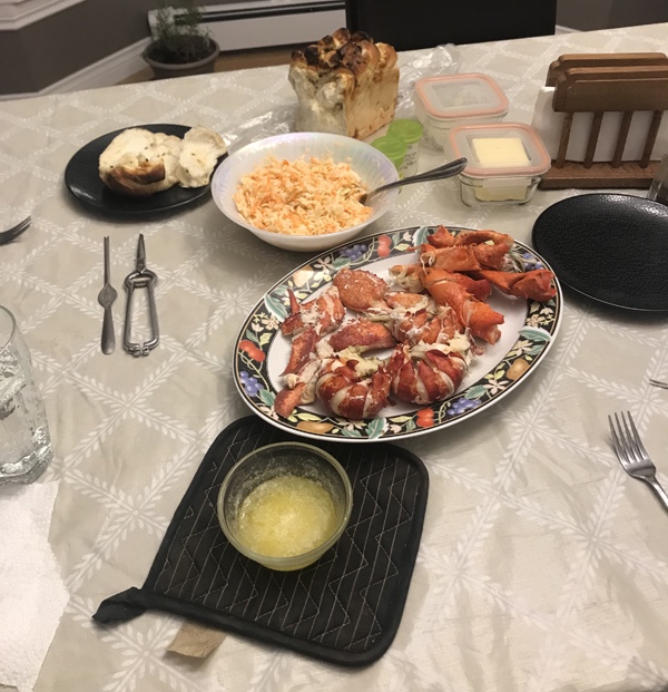 I certainly don’t miss or need gifts either. As far as lobster goes you may steam it there but we boil it here. My father taught me how and every local chef in the area would agree with him.
