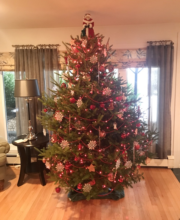The tree is up, but that is it. The needles still litter the family room floor. Other household decorations are still in their Rubbermaid totes. Most of those totes are still under the stairs where they are stored all the rest of the year. Less and less of them come out every year.