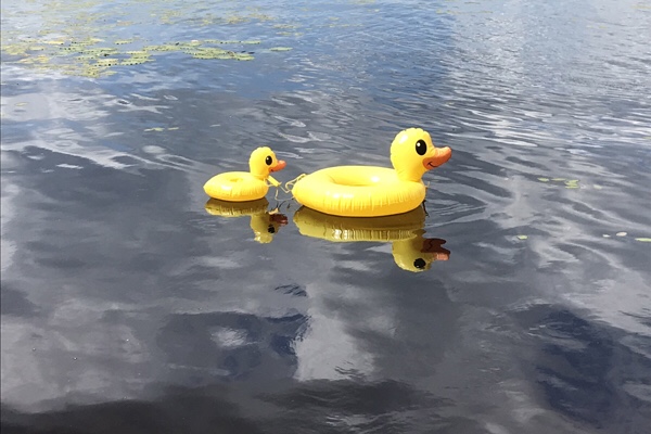 Enter Stella and Finn. Mom and baby were tasked with the job of floating on the surface of the lake to deter the geese from coming ashore. I admit that I was a sucker for their cuteness; and even though they couldn’t do the job one hundred percent, they will remain fixtures on my waterfront. Watching them scoot around on the surface as far as their anchor will allow is very entertaining, especially when they catch a breeze.