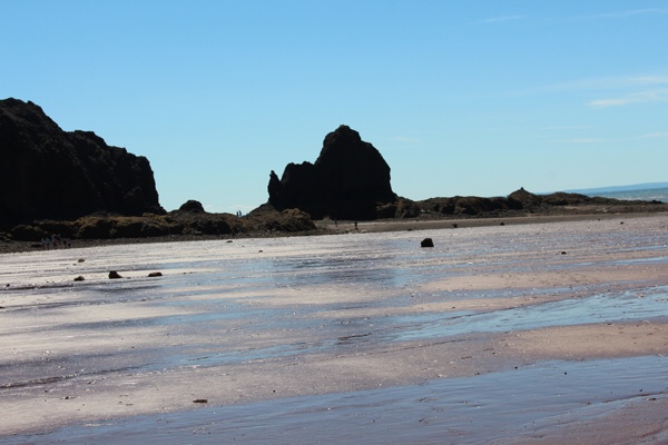 The first thing you see when you arrive at Five Islands at low tide is that the inlet is totally empty of water. People are walking and exploring the ocean floor. Some have metal detectors, others buckets and shovels. Most are wandering around letting their bare feet sink into the saturated red sand.