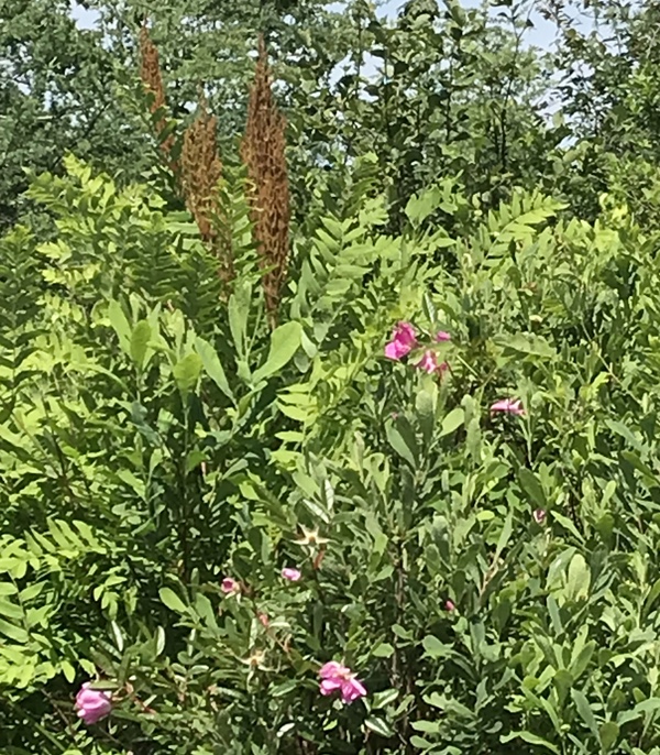 Cinnamon ferns and wild roses.