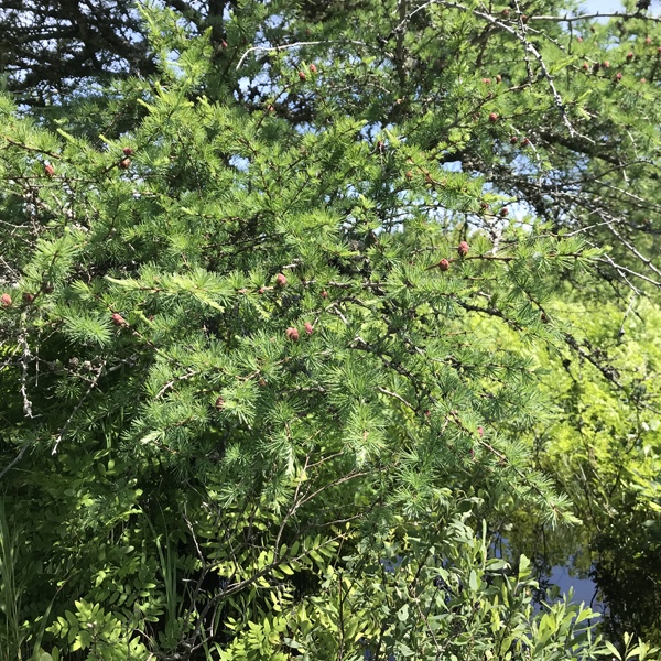 The beautiful red cones on a larch tree. The larch tree loses its needles in the winter. They turn a beautiful gold colour before they fall off.