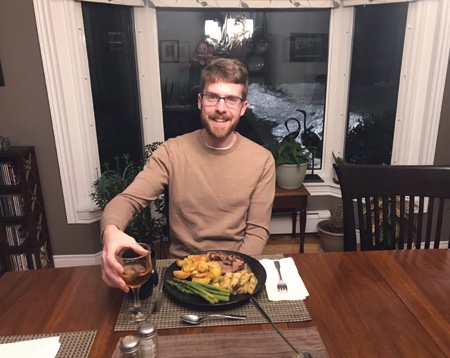 Then came New Year’s Eve, which happens to be JT’s birthday, so another big meal was in order because JT’s birthday has revolved around delicious food since he was quite little. These days he loves to cook and his palate is quite refined, well beyond the skills in my kitchen; but he was quite happy with roasted lamb and potatoes, along with parsnips and asparagus to celebrate turning 33 and end of our busy month of December.