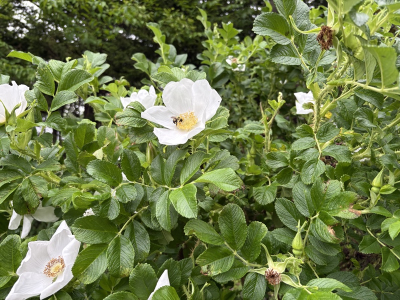 Beautiful roses. A Borden rose is new to my garden with lovely compact blooms. The deer like the blooms so this year they’re protected with chicken wire (or maybe it should be called deer wire!).