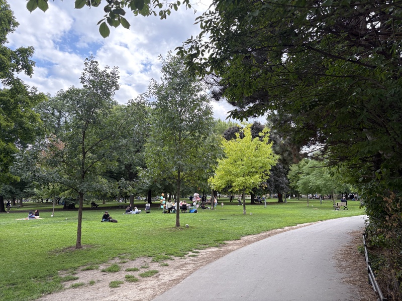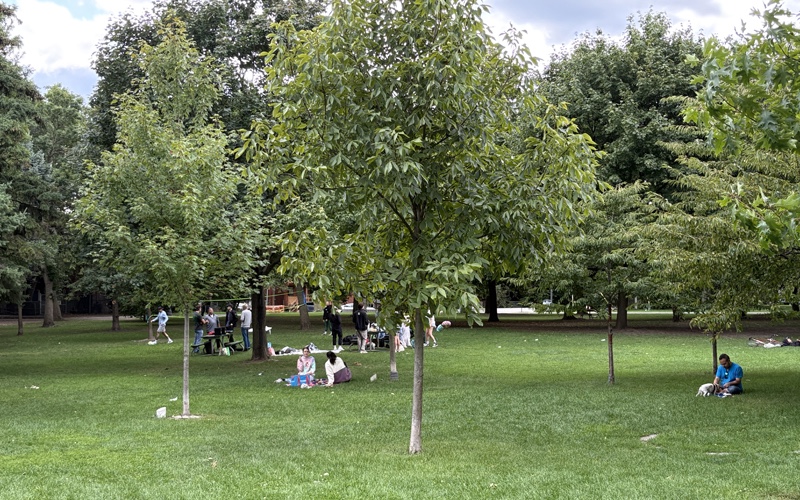 Trinty Bellwoods Park is one of Toronto’s busiest public spaces. It is between the Toronto neighbourhoods of Queen west and Little Portugal, south of Dundas Street. It was certainly busy the Saturday afternoon we were there. The park is approximately 38 acres in size and is truly a community recreation hub. There were birthday parties and wedding showers taking place at picnic tables, kids playing, tennis matches, volleyball games, dogs running in off-lease areas, everything mingled with laughter and the sweet smell of marijuana, which is legal in Canada.