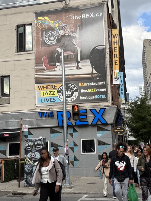 I had been hearing about The Rex since JT moved to Toronto, at least ten years ago. The Rex is Toronto’s longest running jazz club. It is also a restaurant and an inexpensive, bare-bones hotel. Based on what we paid for our rooms on this trip, I might consider these bare-bones on my next trip. The Rex has live music performances every day. It is known for attracting the best Canadian Jazz and Blues musicians and for still being affordable. The set during the dinner hour that we attended was free or pay what you can.