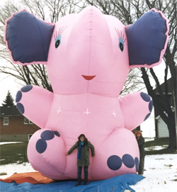 Once, I landed a job as a designer of advertising inflatables. It was the equivalent of sewing beach toys that were inflated by large fans. My favourite was a twenty-five-foot pink elephant that would later make an appearance in one of my short stories.