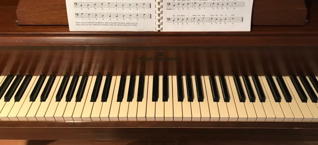 Da da da da-da-da. Da da da da-da-da. Da da-da-da, da da-da-da. Dum-da-da-da-da, da-da-da-da... Who knew such a simple melody could make a person so happy? Or at least make me so happy. After about three years, on and off, of lessons and practice, I have made it to page 107 of the Alfred's Basic … Continue reading Da da da da-da-da